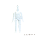 約11cm(ヘッド接続時)の小型ボディです。装着見本は11-01ヘッド着用。小型ながらも広い可動範囲と関節保持力を誇ります。また、二の腕の内側部分を削ることにより、お洋服を着せた時に脇がモタつきにくい構造となっています。